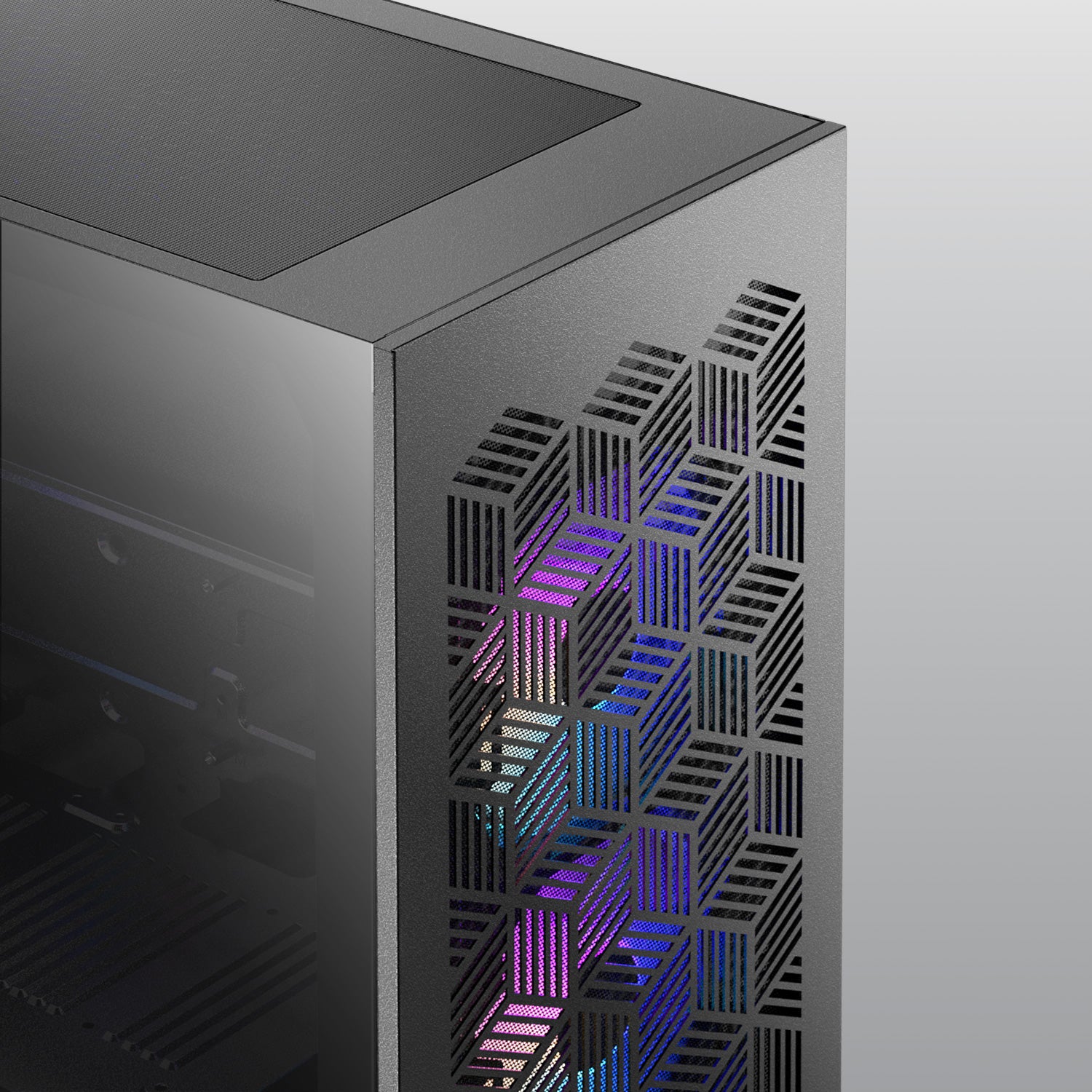 The precisely engineered perforated pattern is not only a visual focal point, but also optimizes airflow intake to achieve superior cooling performance