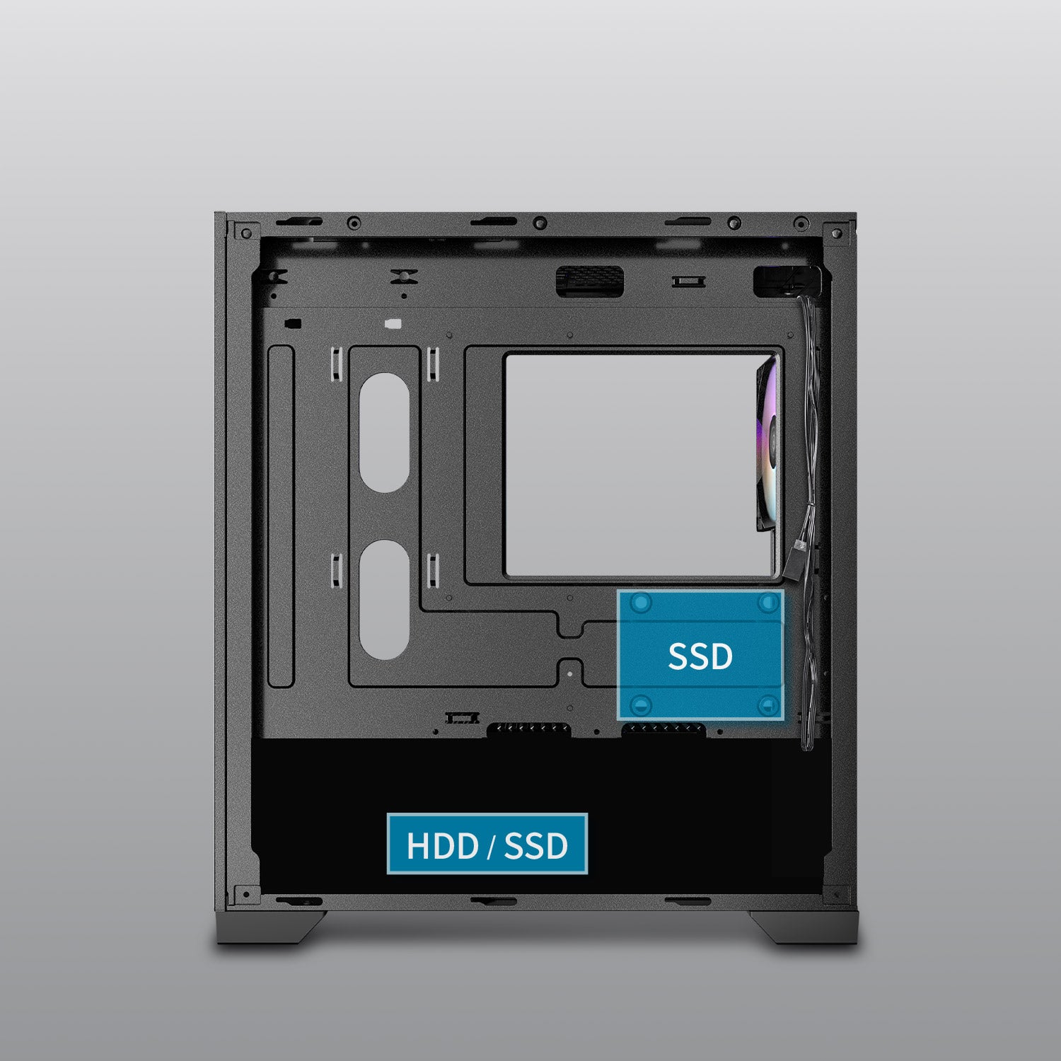 1x hard disk bracket support 3.5” HDD or 2.5” SSD