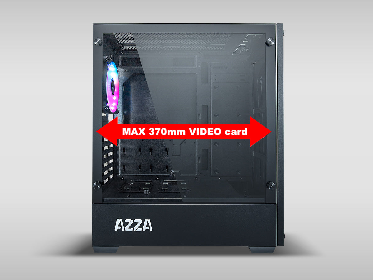 Allows for graphic cards of up to 370 mm and CPU cooler height up to 155 mm.