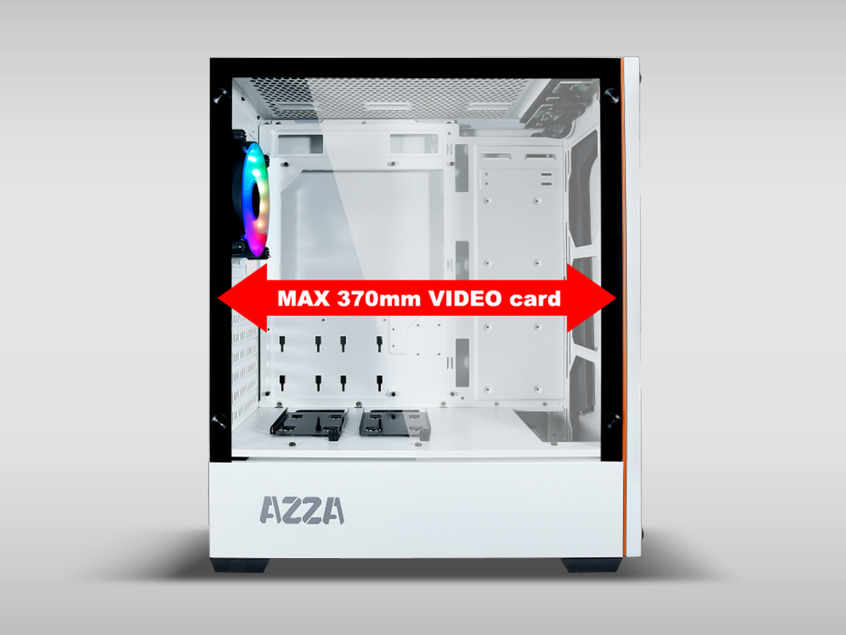Allows for graphic cards of up to 370 mm and CPU cooler height up to 155 mm.