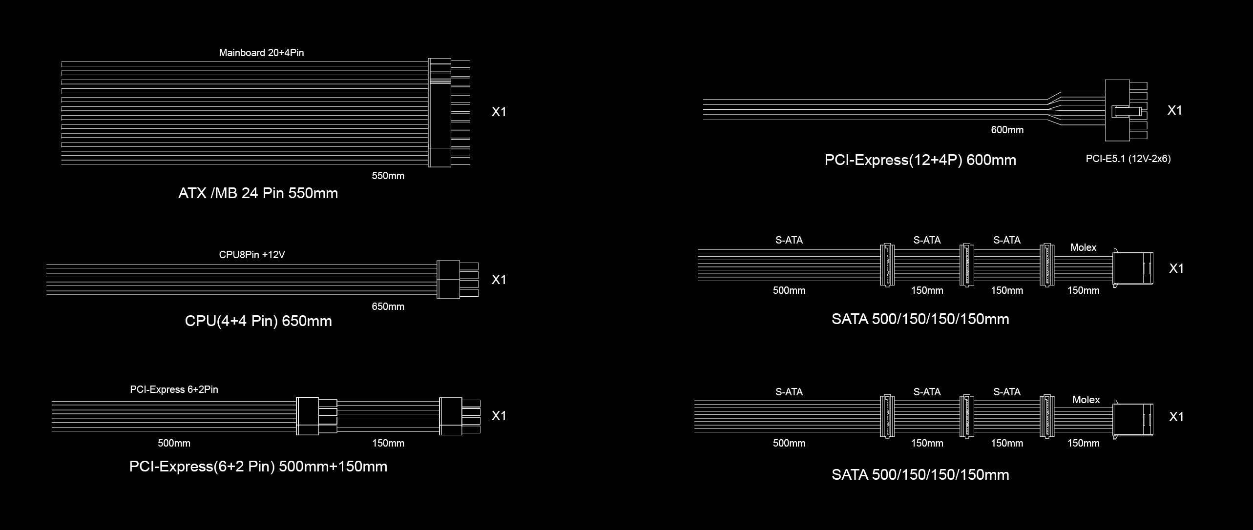 1 x PCI-e 5.1  1 x (12 + 4 Pin)