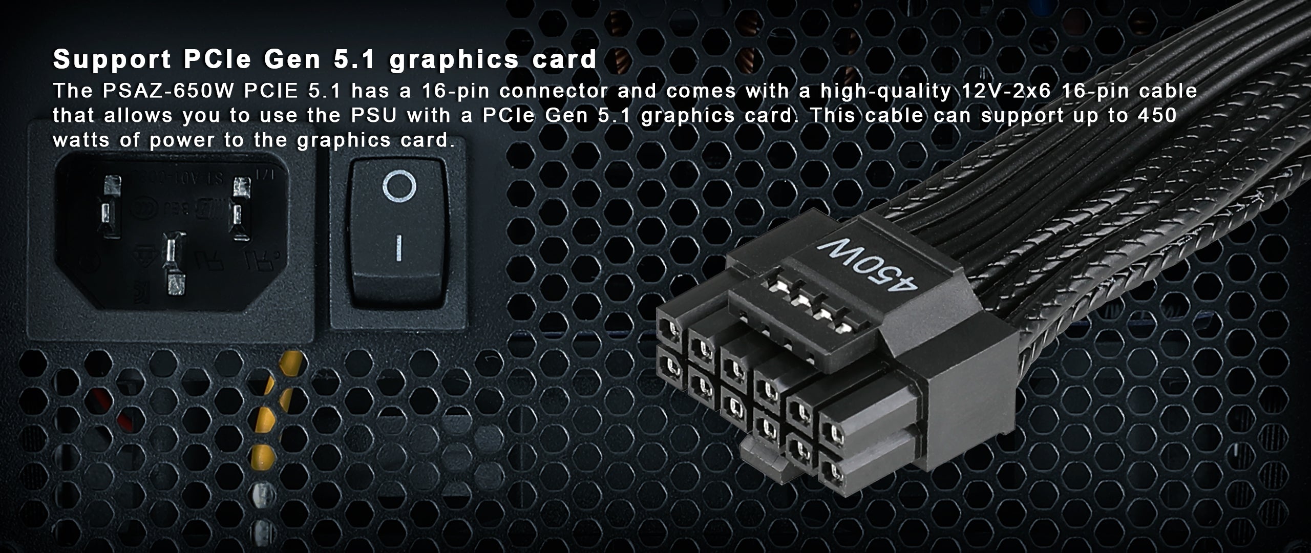 - High-quality 12V-2x6 16-pin cable supports 450W output