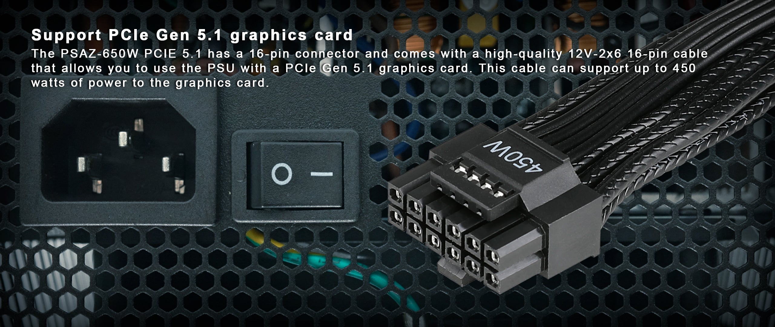 - High-quality 12V-2x6 16-pin cable supports 450W output