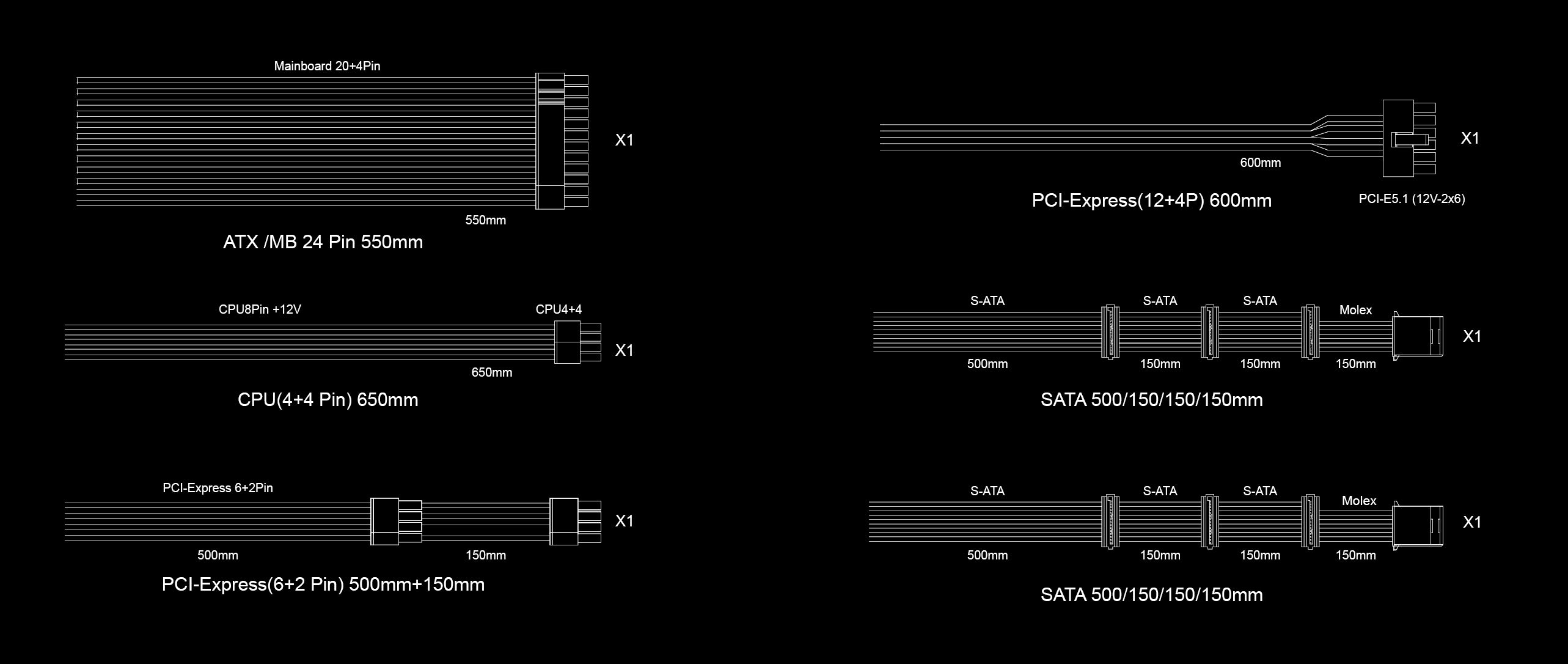 1 x CPU8P cable 1 x (8PIN)