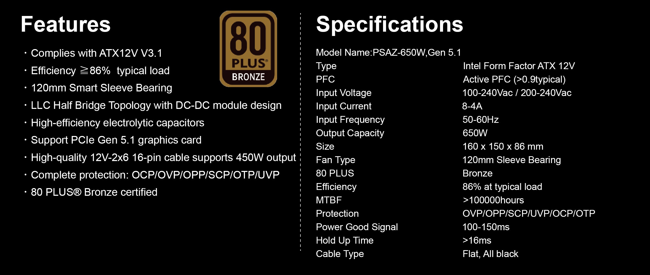 - 80 PLUS® Bronze certified