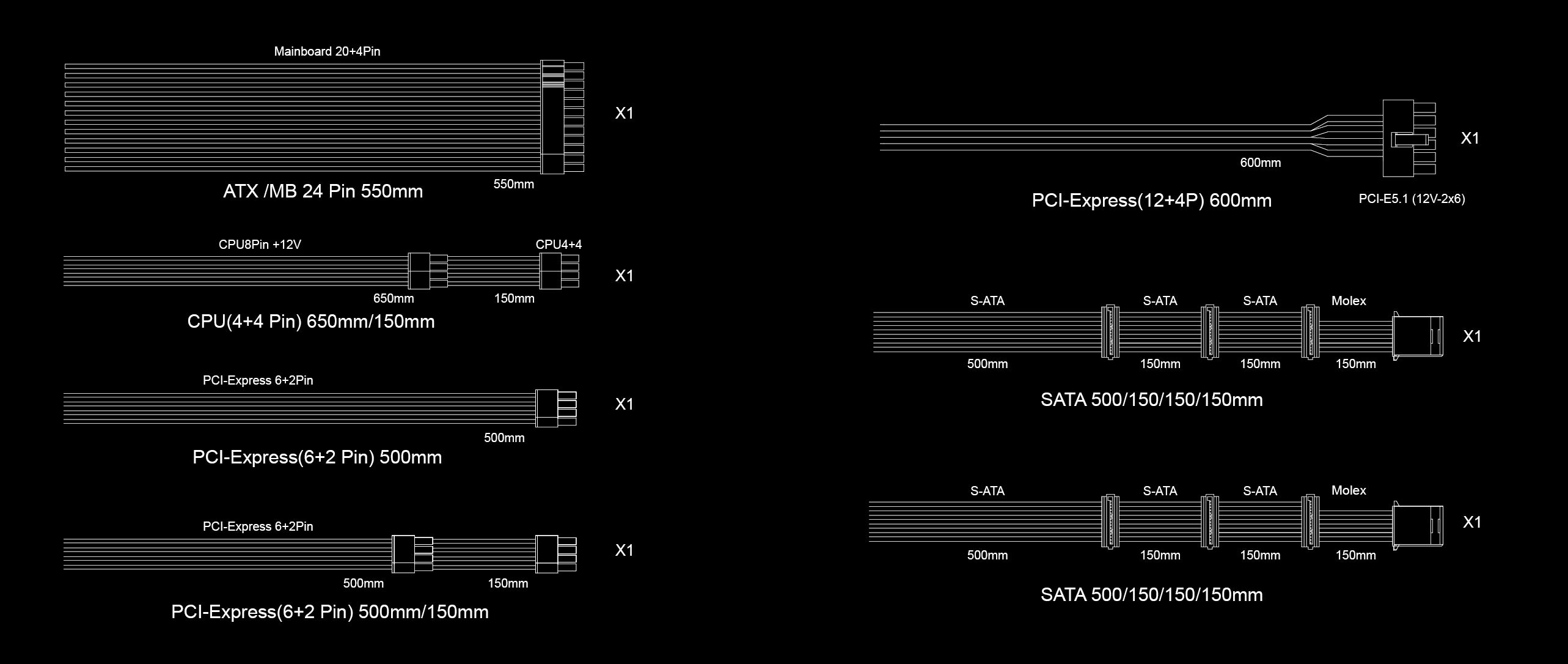 1 x ATX cable (20 + 4 PIN)