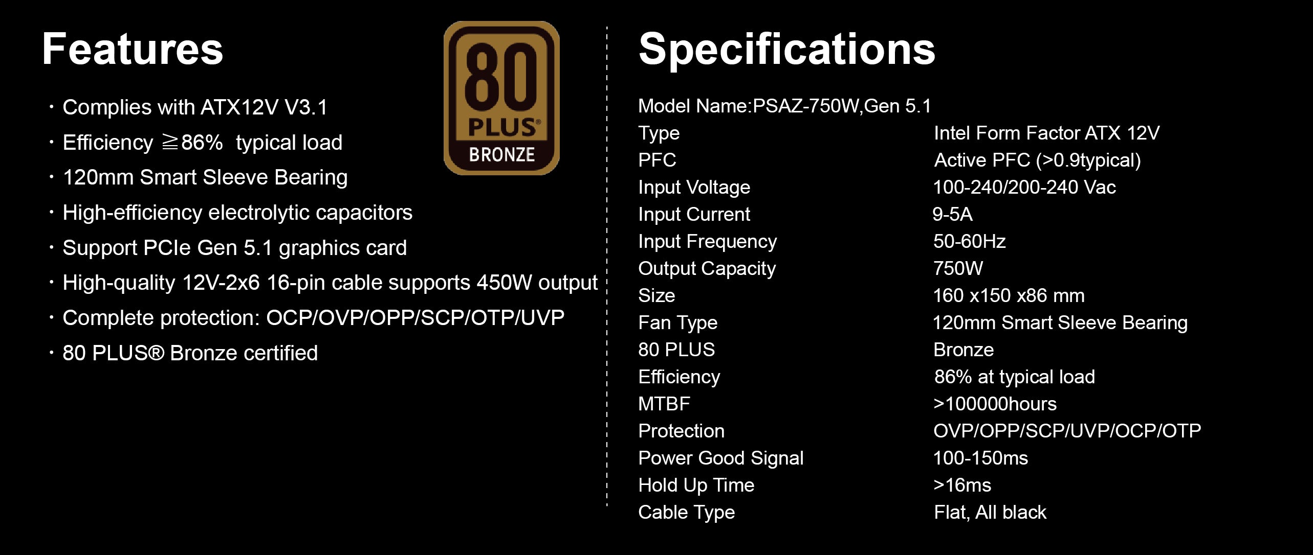 - 80 PLUS® Bronze certified