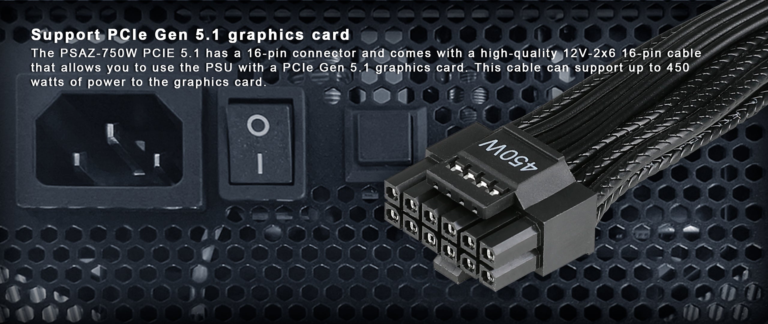 - High-quality 12V-2x6 16-pin cable supports 450W output