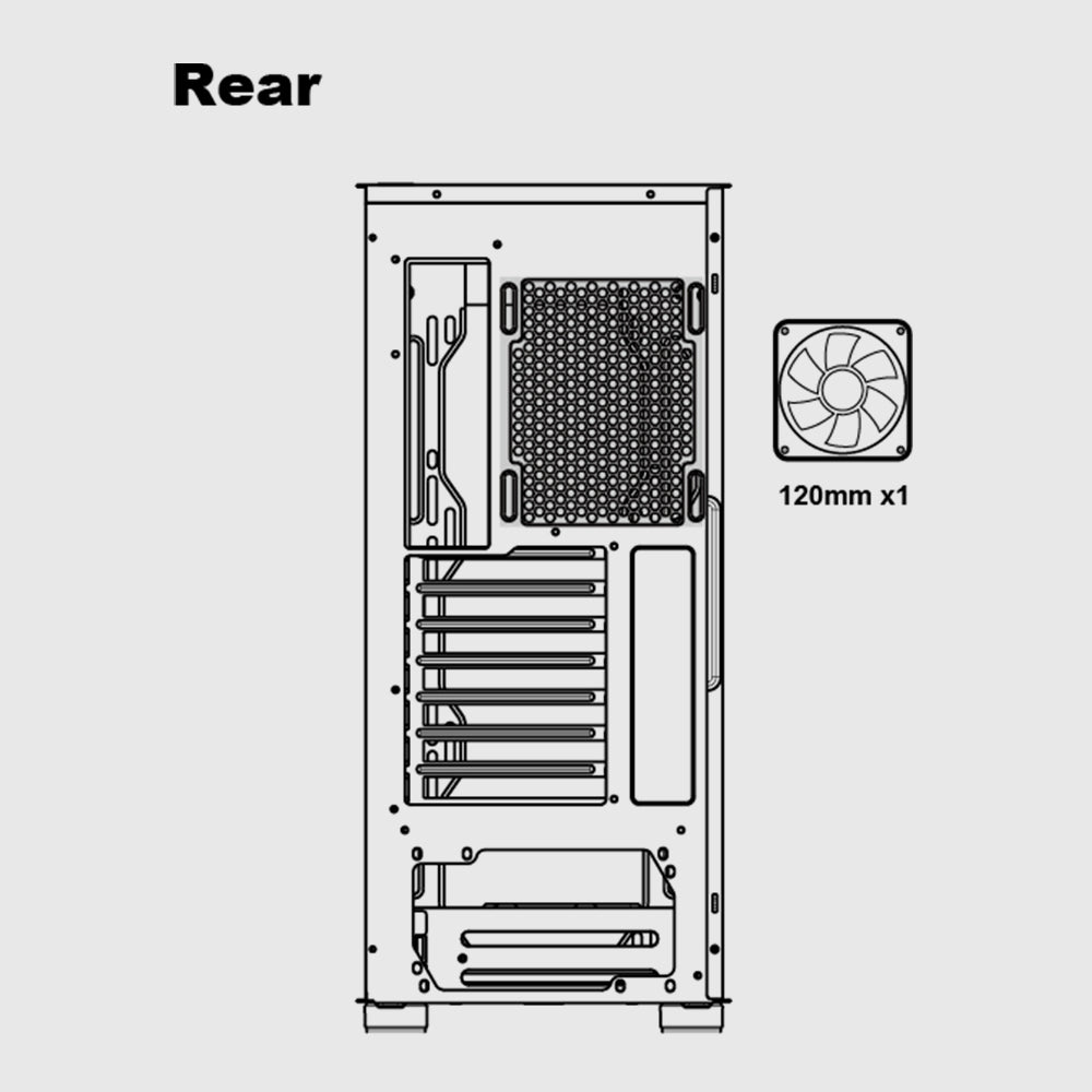 1 x 120 mm fan port in the rear