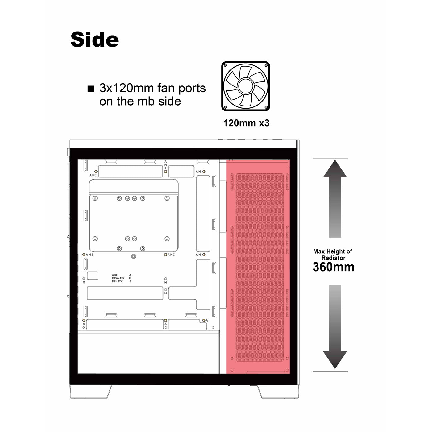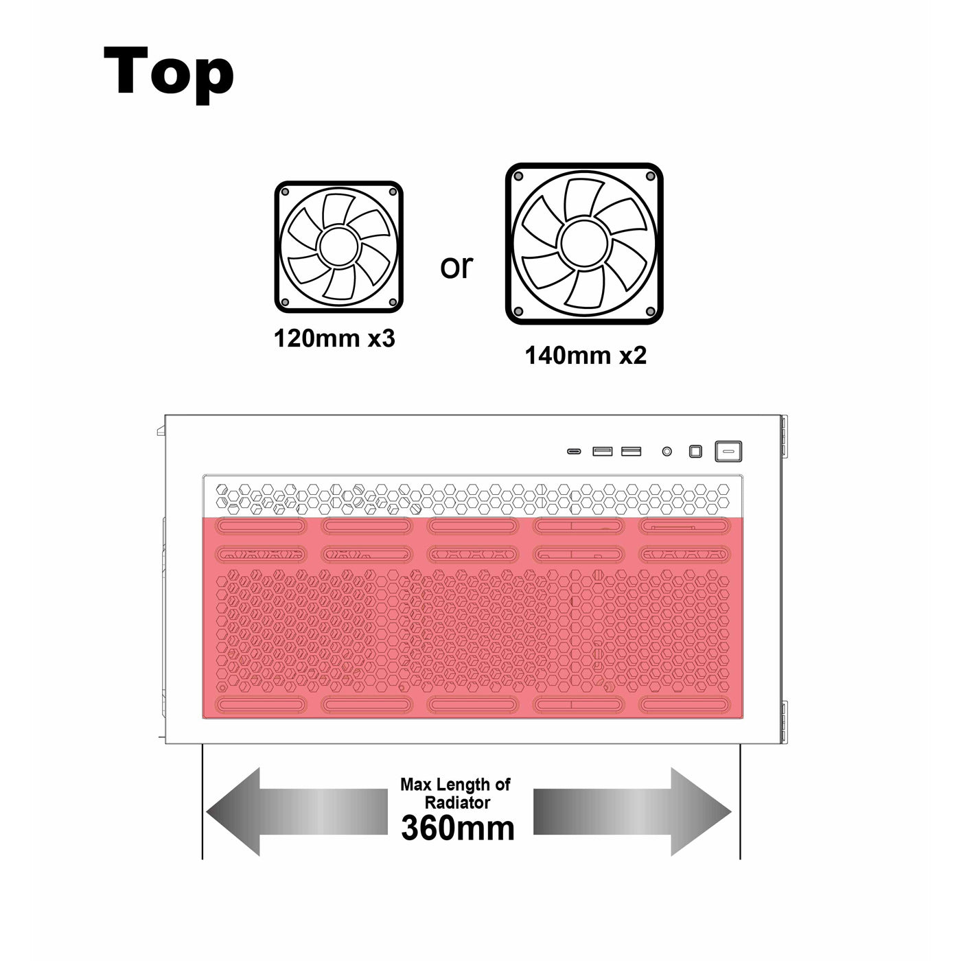 Direct airflow to the GPU can be achieved by adding 2 x 120mm fans above the PSU shroud,bringing the total fans support up to 10 x 120mm fans!