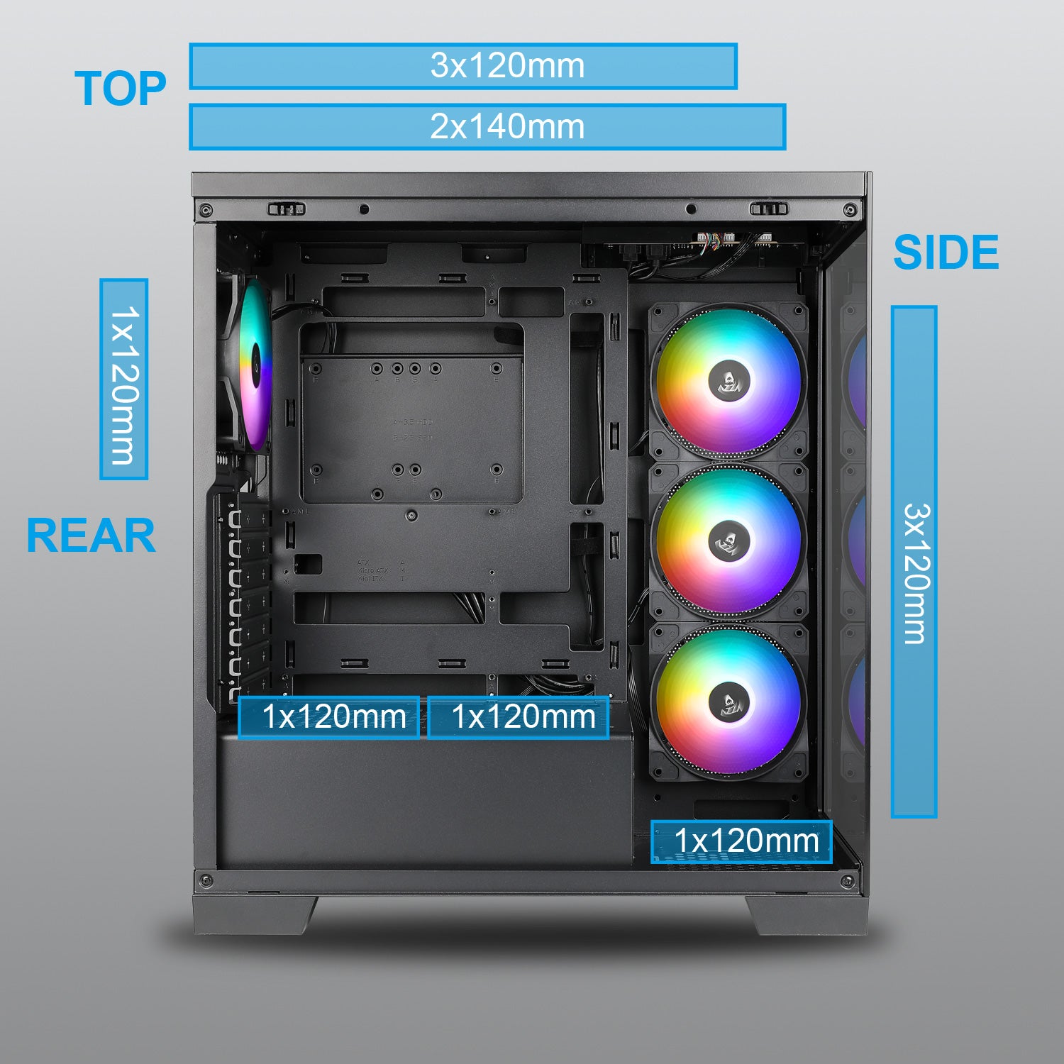 Fans: Up to 3 x 120mm or 2 x 140mm