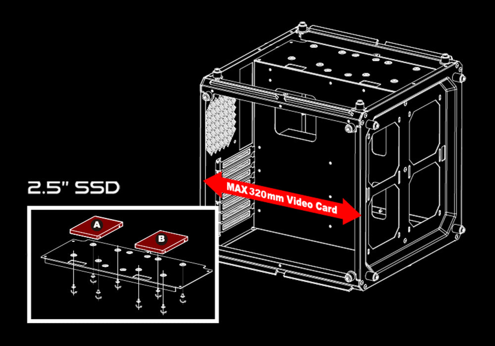Supports 2 x 2.5" SSDs and GPUs up to 320 mm in length.