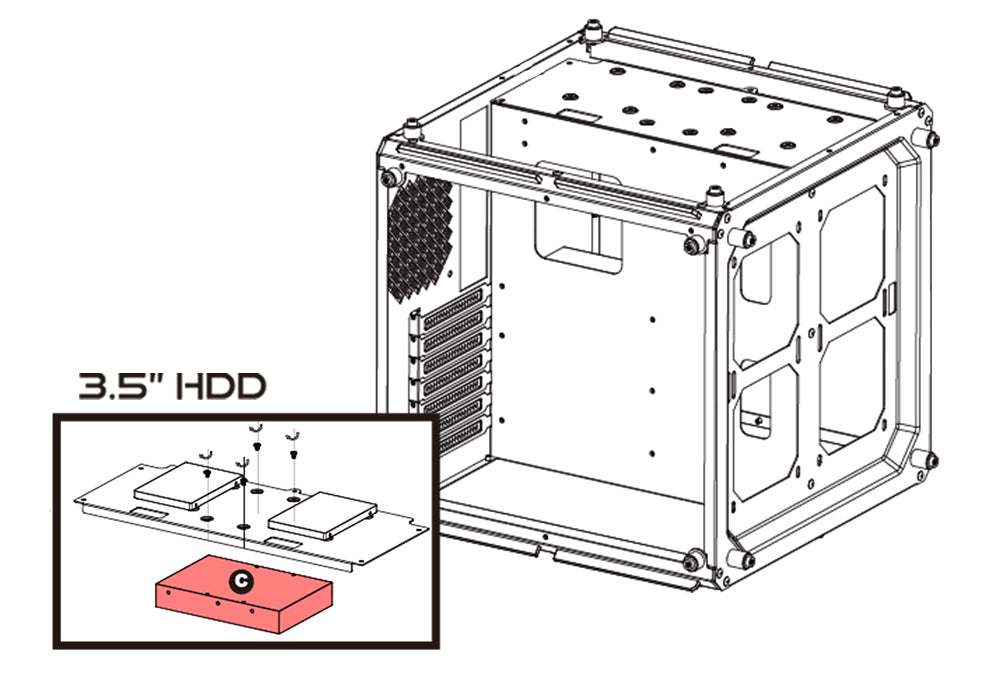 Swappable for 1 x 3.5" HDD which can be hidden in the back chamber