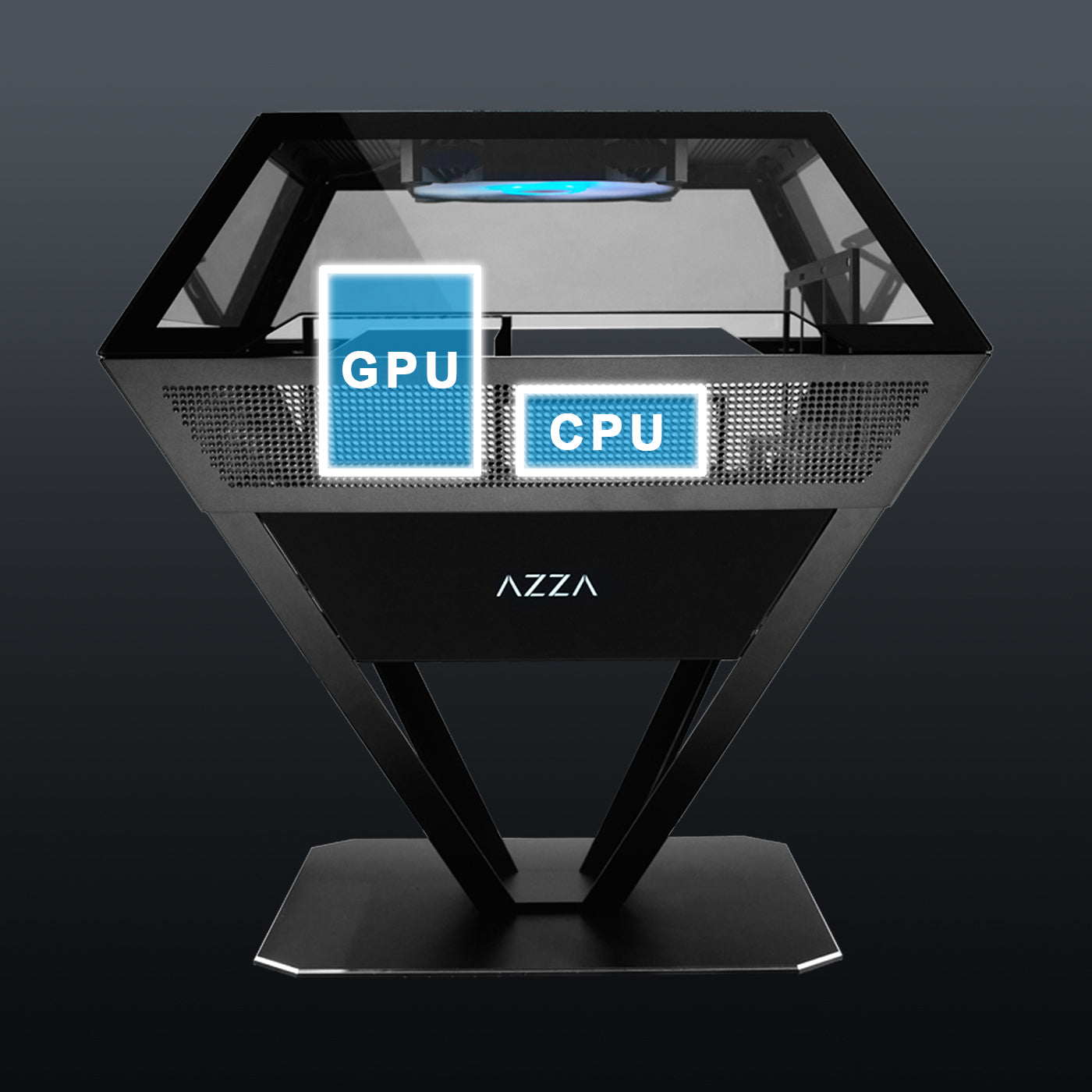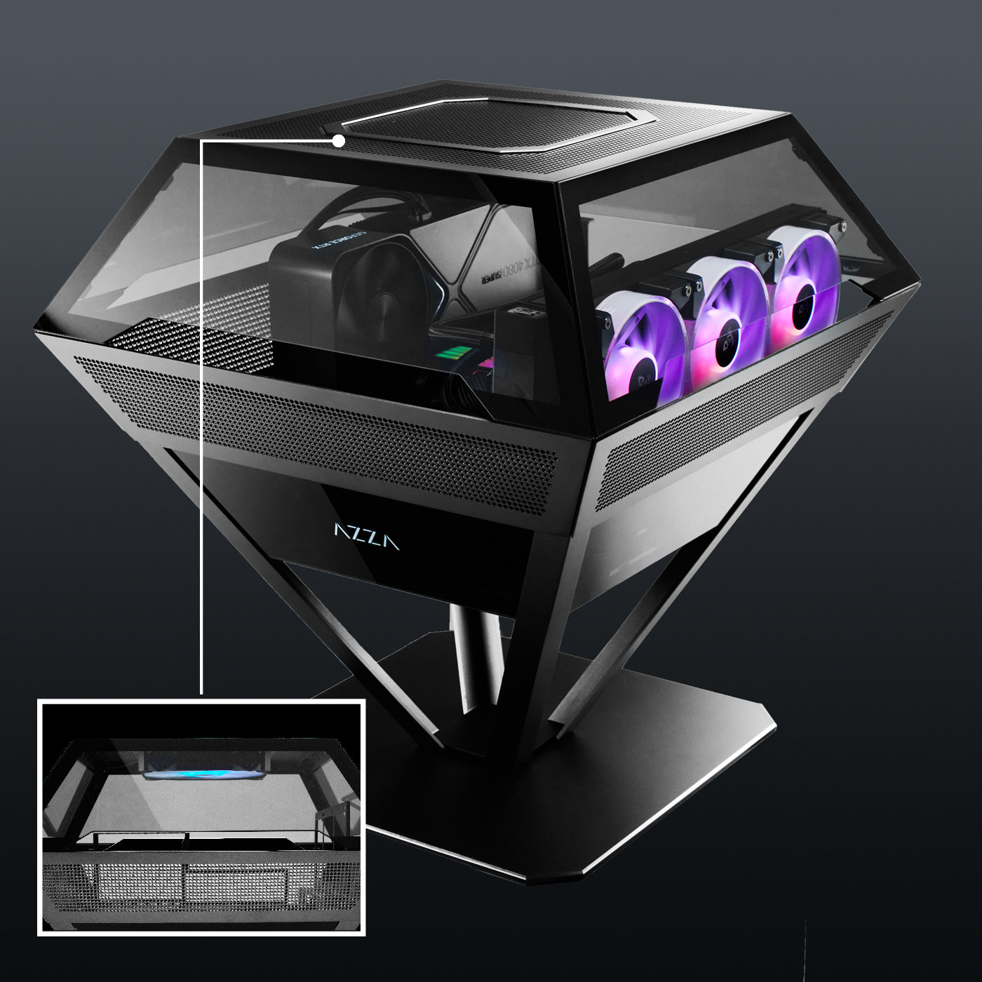 Diamonds have long symbolized an unbreakable heart and everlasting love. The Azza Diamond reflects your true heart and unconquerable spirit in every match. This elegant chassis presents a panoramic design with all-around glass panels and five-sided mesh shrouds that maximizes air intake.