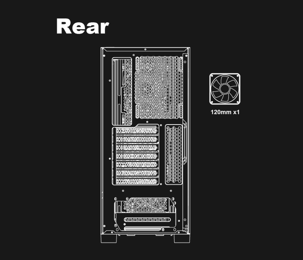 3 x 120 mm or 3 x 140 mm fan ports in the front