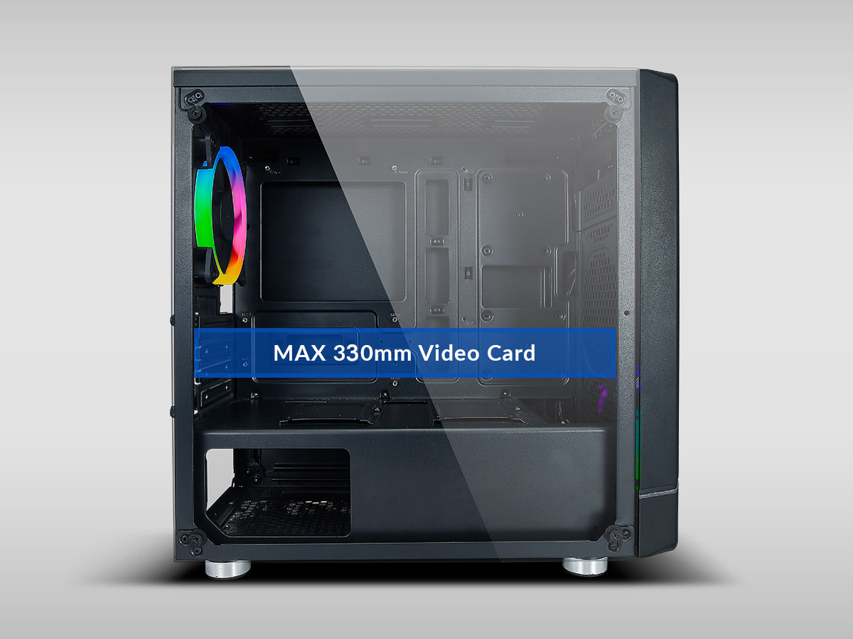 Allows for graphic cards of up to 330 mm in length and a CPU cooler height of 165 mm, all inside a micro-ATX case.