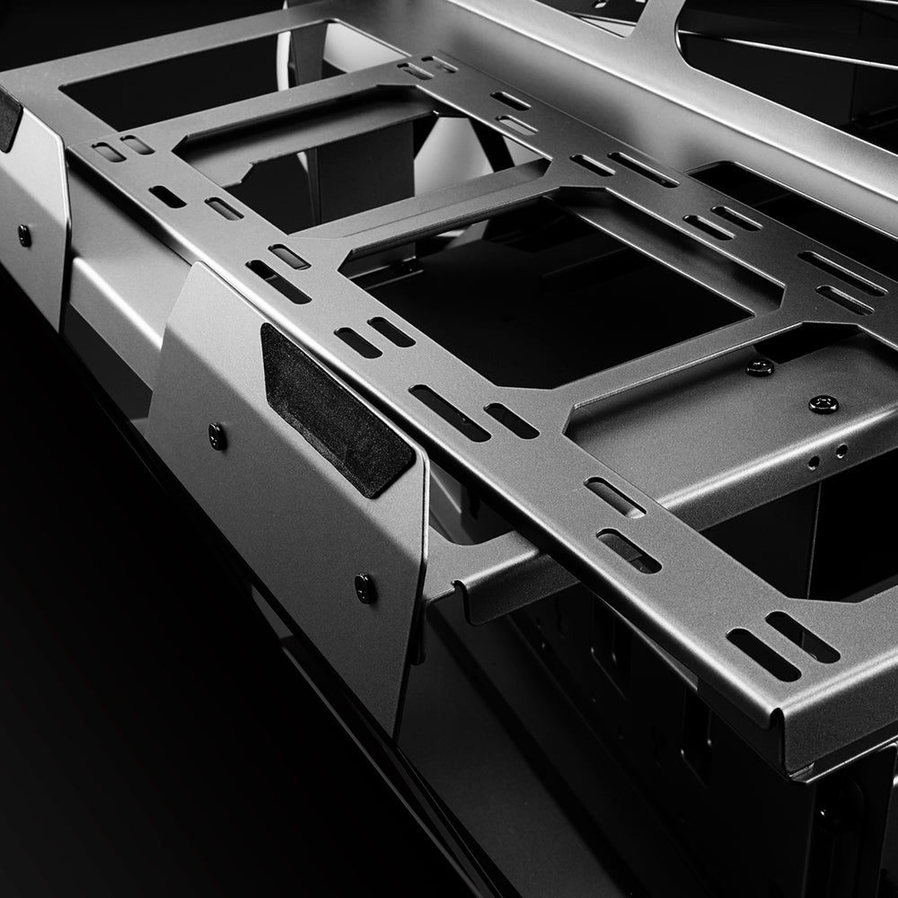 The two removable brackets located below the wings supports up to 2 x 360 mm radiators, either 3 x 120 mm or 2 x 140 mm fans, or graphic cards of up to 400 mm (with the included expansion slot brackets).