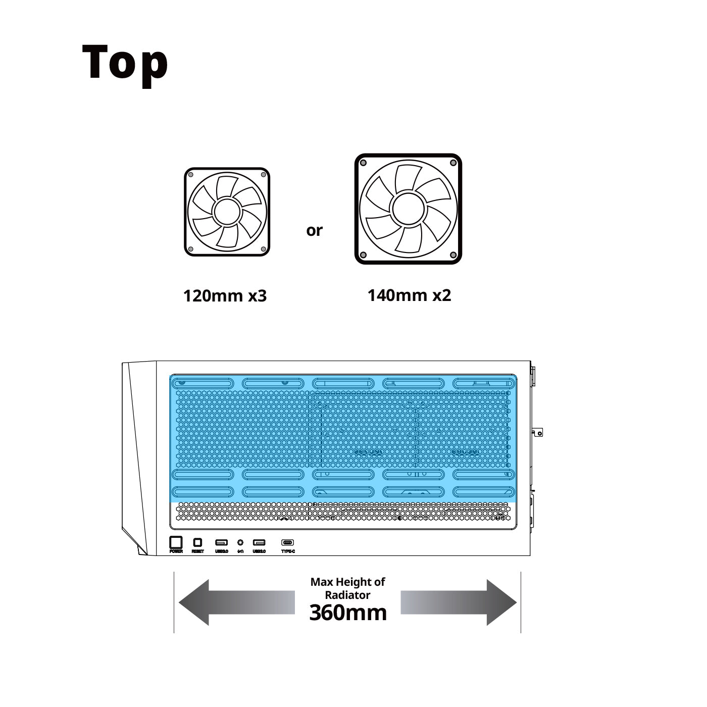 Fans: up to 3 x 120 mm or 2 x 140 mm fan ports on the top