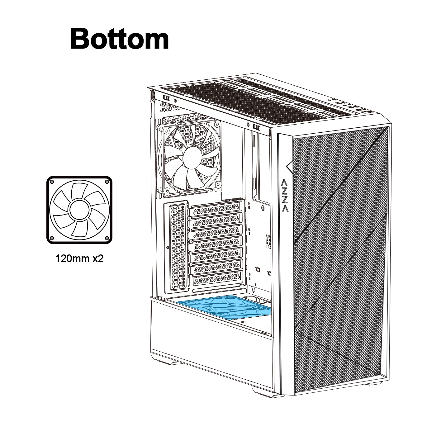 Fan: 2 x 120mm fan ports at the top of the PSU shroud