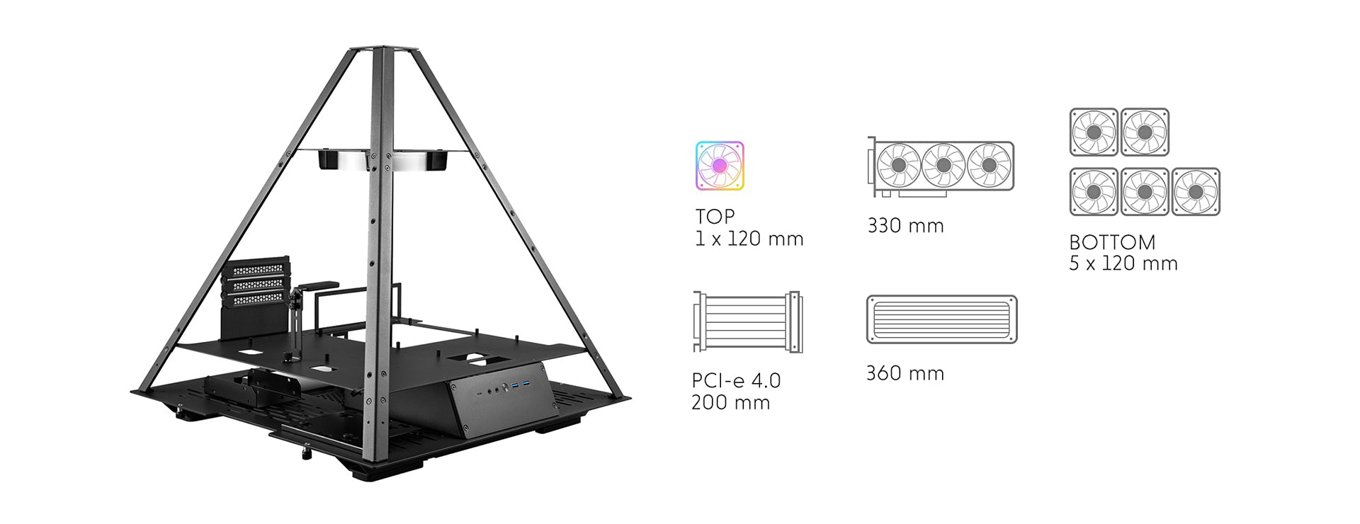 The AZZA PYRAMID Mesh is an iconic ATX pyramid enclosure for PC connoisseurs looking for a high airflow showcase chassis with premium craftsmanship. The exterior frame can be completely separated from the robust inner frame for 360-degree access to components, while the elevated base is inherently stable.