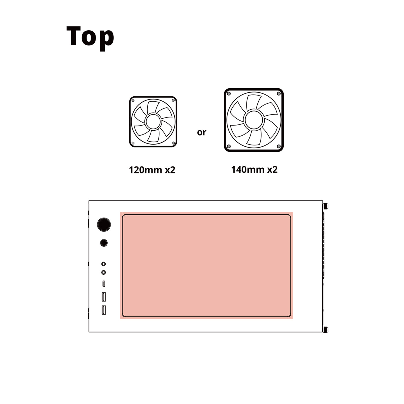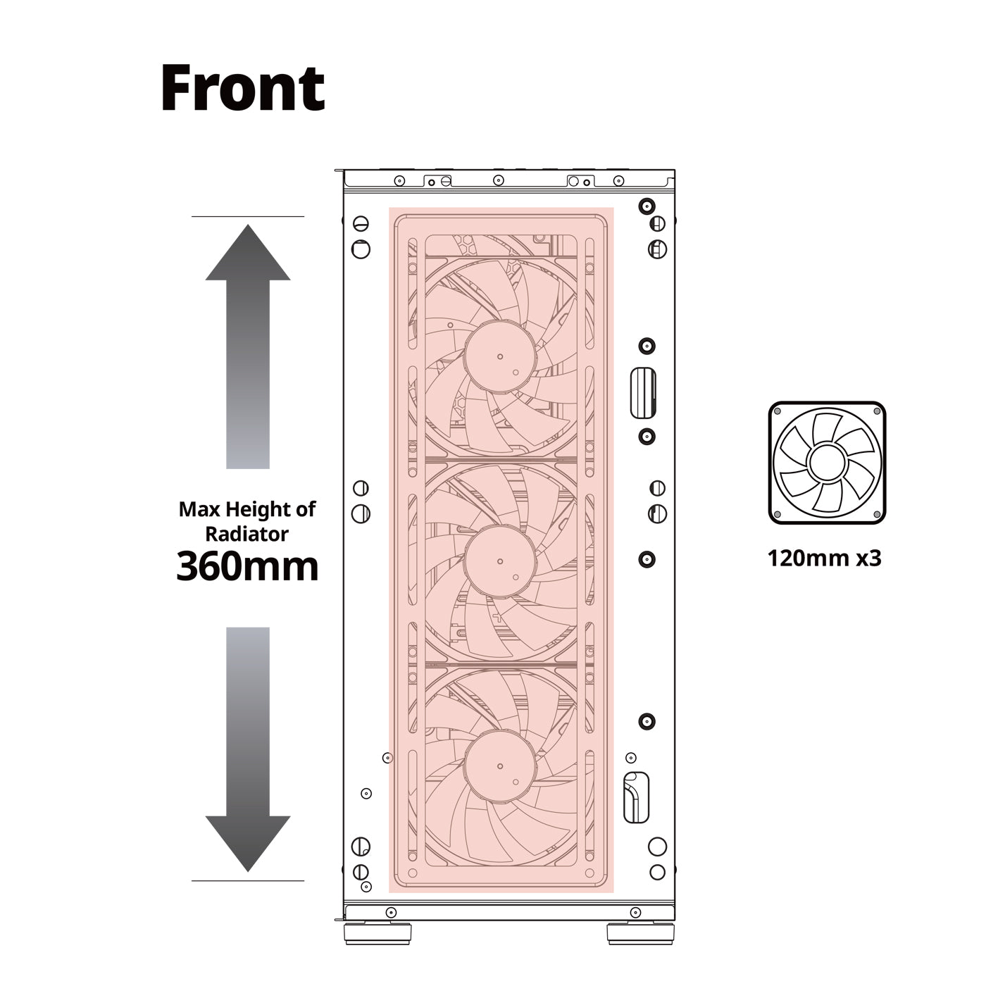 3x120mm fan ports in the front(2x120mm LFO-5812D addressable ARGB fan included)